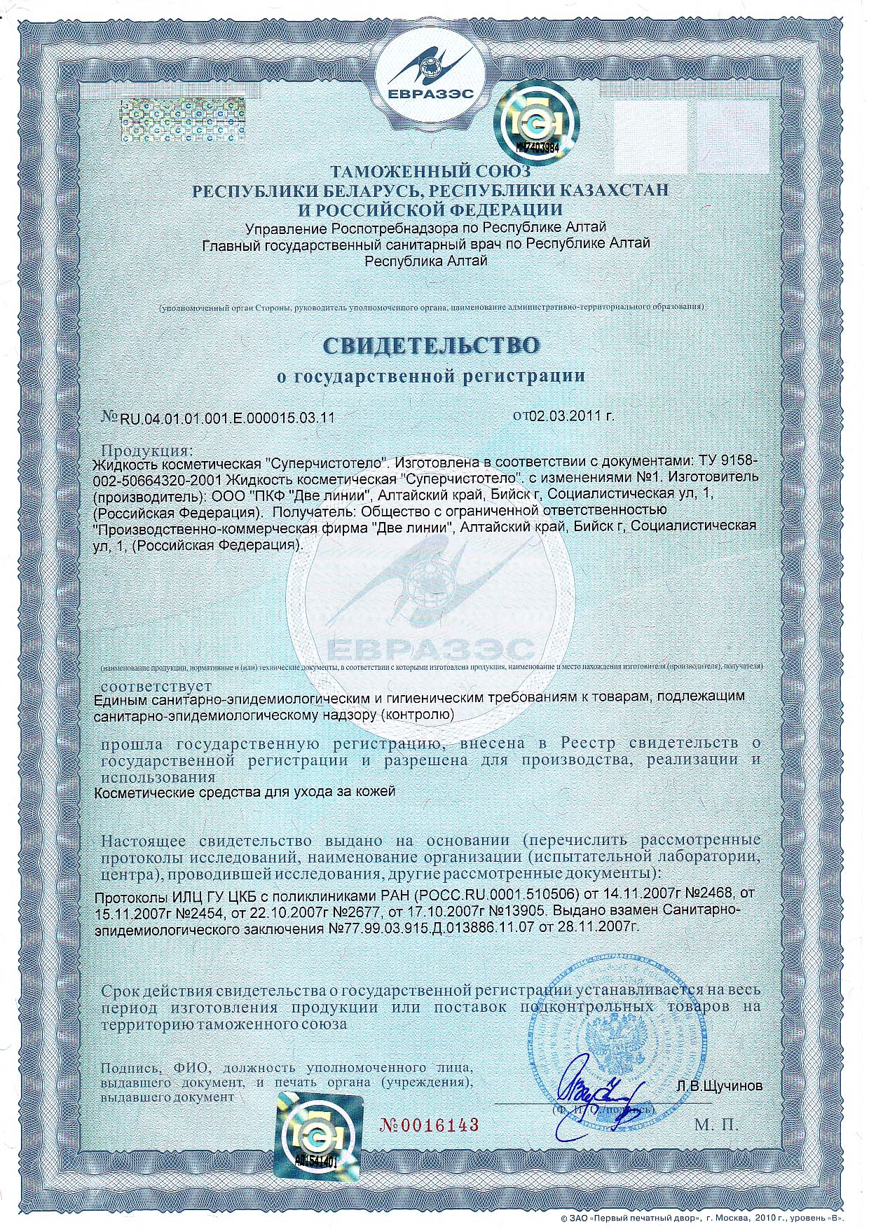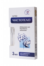 Суперчистотело - средство для удаления избыточно ороговевших участков кожи (бородавки, папилломы). Способ применения: косметическая жидкость "Суперчистотело" наносится на ороговевшие участки кожи. Через 1-2 дня начинается отшелушивание и на 3-5 день - очищение. Более крупные образования могут требовать повторной обработки, а курс включать от одной до пяти процедур. Результатом является чистая кожа. Следует отметить, что средство не применяется для удаления кожных образований на лице и слизистых оболочках. "Суперчистотело" работает эффективнее, если перед процедурой дефектное место распарить. Объём: 3мл Состав: суперчистотело жидкость кометическая. Натрия гидроокись, калия гидроокись, дистиллированная вода. Производитель: Две Линии. Алтай. |